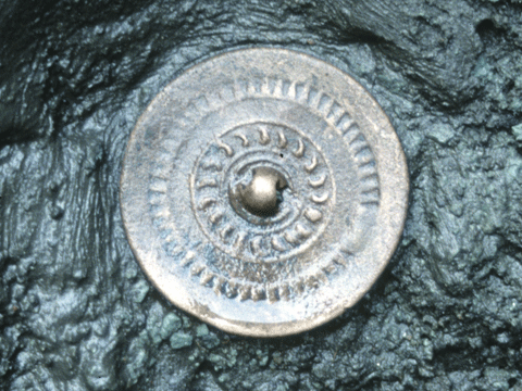 鏡の造られた年代は溝の埋まった時期よりもう少し古いようで、大切にされていたものがある時期捨てられたのでしょうか。低地遺跡のため腐食が進まず、非常に残りのよい銅鏡です。