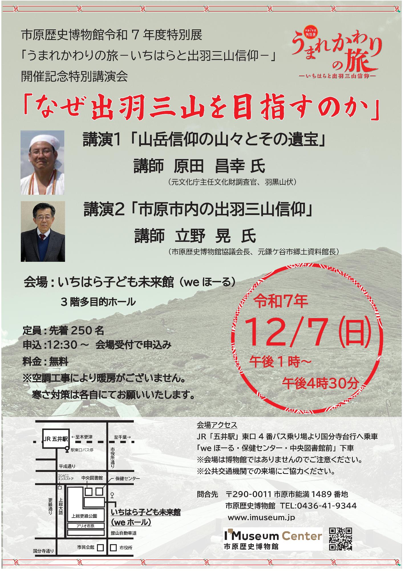特別展「うまれかわりの旅ーいちはらと出羽三山信仰ー」開催記念講演会「なぜ出羽三山を目指すのか」開催